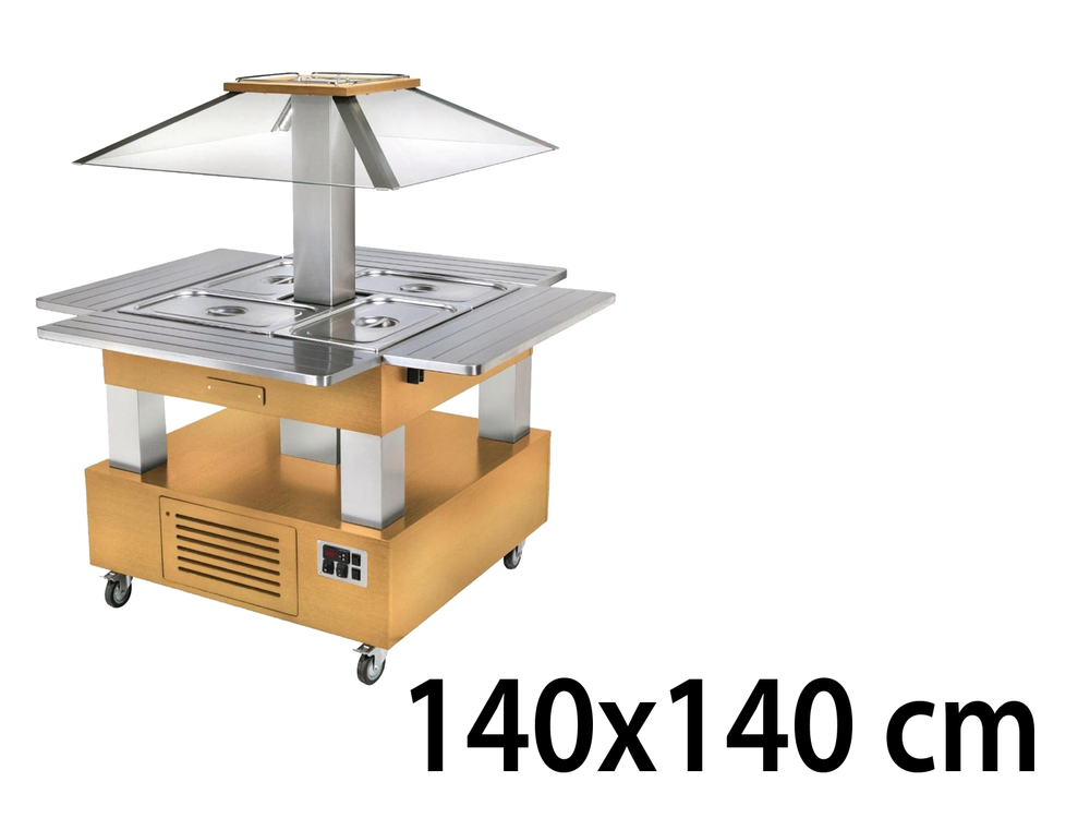 Isola frigo quadrata con vasca refrigerata inox e rivestimento in legno -1°/+8°C